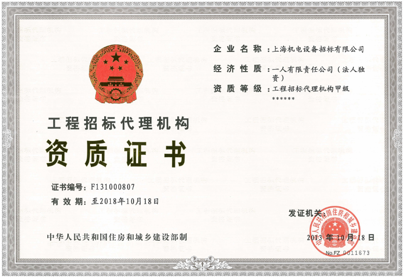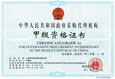 國(guó)家財(cái)政部授予的首批《政府采購(gòu)代理機(jī)構(gòu)甲級(jí)資格證書(shū)》,以及國(guó)家發(fā)改委授予的首批《中央投資項(xiàng)目招標(biāo)代理機(jī)構(gòu)甲級(jí)資格證書(shū)》。