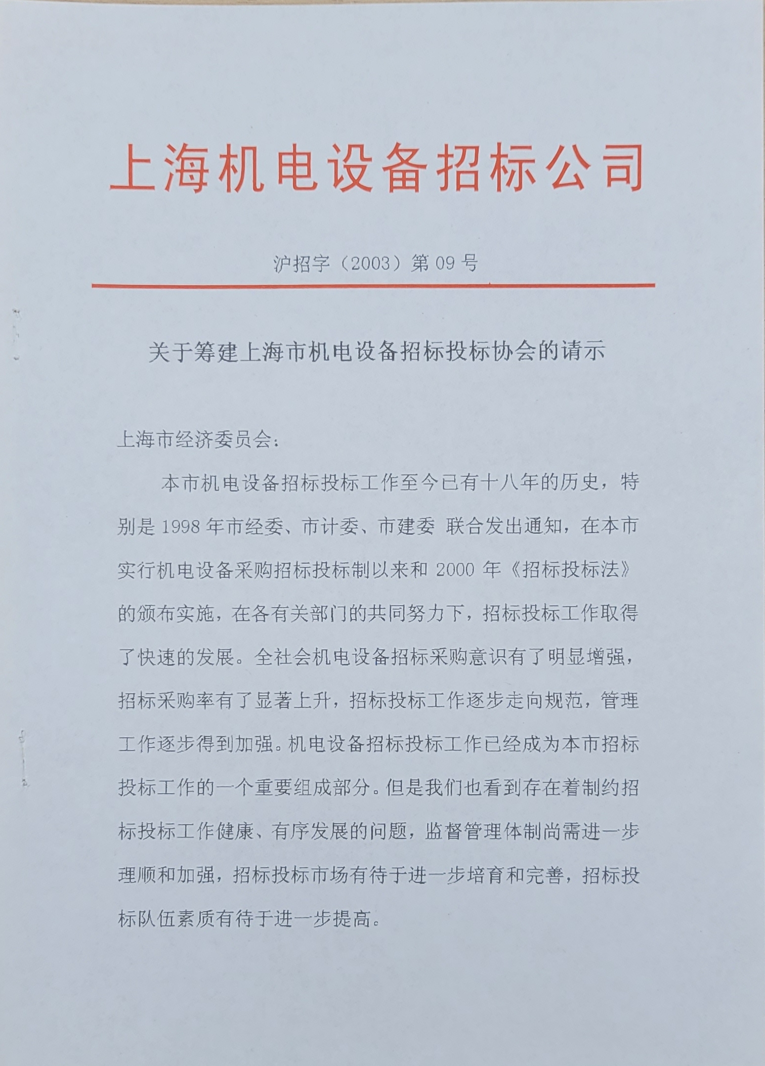 參與籌建上海市機(jī)電設(shè)備招標(biāo)投標(biāo)協(xié)會(huì),并擔(dān)任首屆理事長(zhǎng)單位。