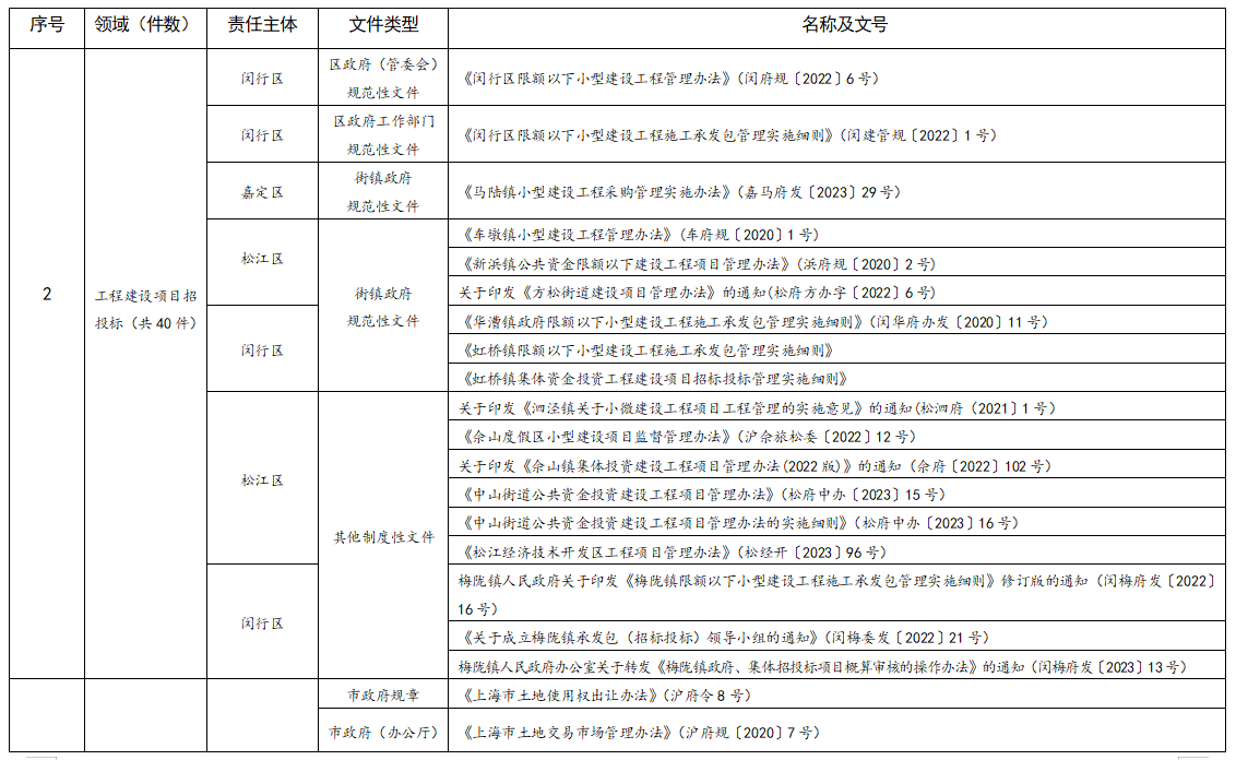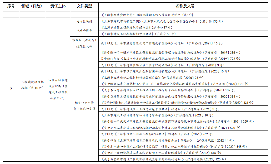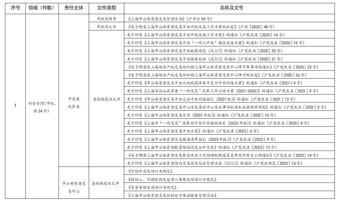 上海市公共資源交易規(guī)則目錄(2023年版)